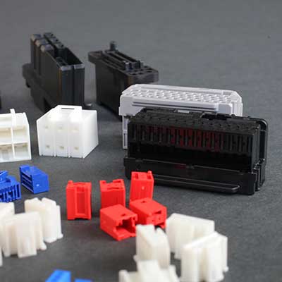 電子機器を構成する電子部品分野でもプラスチック部品は活躍しています。近年、電子機器の小型化、多機能化が一段と進み、それに対応するため電子部品はさらなる小型化を求められています。 私たちは、得意とする高精度な金型製作技術により、これらのニーズにお応えしています。