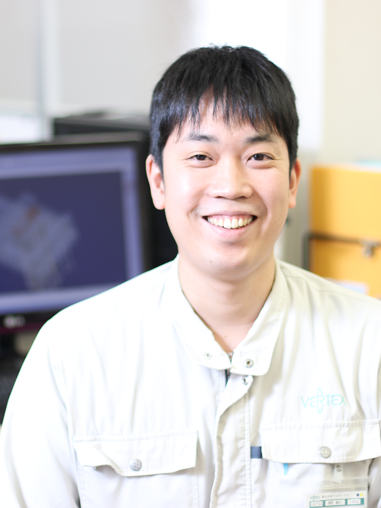 前職では生産技術部門で機械設計の経験があり、ベルテックス入社後は金型設計部門に配属され今に至っています。入社してまる4年が経過しているのですが、最初の1年は先輩の方々が基本構想を考えられたものの一部の部品図を作成し、それらを仕上げるという作業を中心にしていました。金型図面一式を描けるようになったのは、入社後1年半を過ぎたころからです。