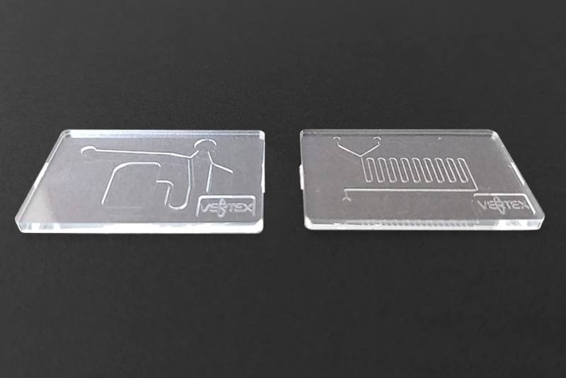 超精密マシニングセンタによる微細加工技術でマイクロ流路など新たな樹脂成形の分野に挑戦しています。マイクロ流路デバイスの量産に欠かせない金型の微細加工技術は、当社が得意とする精密加工技術を応用したもので、高精度な金型を使用したマイクロ流路成形品の表面面粗度はRa0.010㎛、PV0.05㎛。流路幅0.1㎜の底面面粗度はRa0.013㎛、PV0.075㎛と高精度を実現しています。